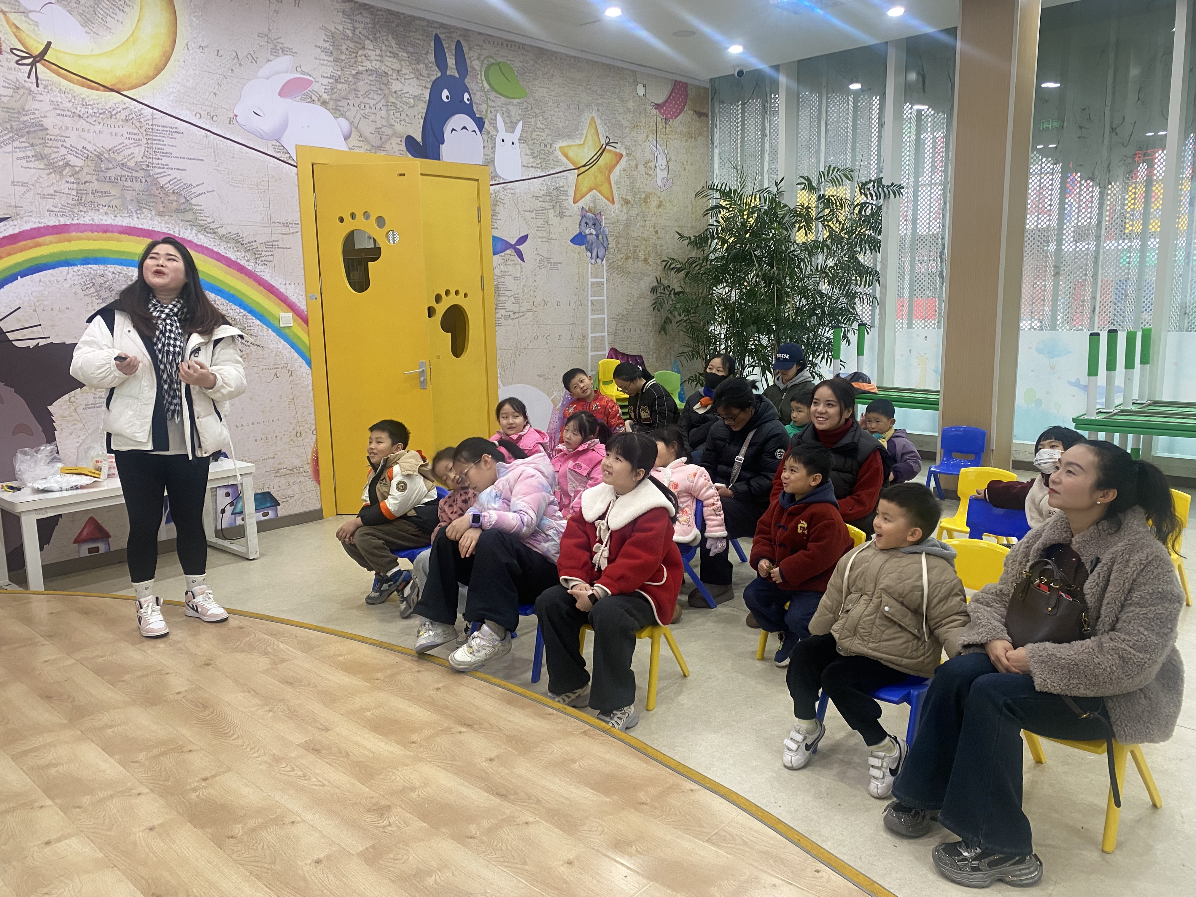 活动在欢乐的“泡泡糖”游戏中开场。“泡泡糖,粘哪里?粘小手!”在老师的带领下,孩子们开心地相互触碰,现场笑声不断。随后的冬至主题猜谜环节中,孩子们纷纷开动脑筋,踊跃竞猜,在轻松愉快的氛围中了解了冬至的习俗。